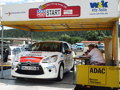 Der DS3-Pilot Volker Kirschbaum war gleich hell-wach, setzte eine 16. Gesamtzeit und ging in der Klasse RC5 in Führung. Beifahrerin Stefanie Fritzensmeier sorgte durch energische Ansagen dafür, dass Volker nicht – wie bei der BuBi-Rallye – die WP 1 „verpooft”.