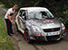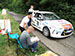Am WP 1-Ende trauten wir unseren Augen nicht. Statt des Halbjahressiegers Timo Wadle / Tobias Schäfer und Teilnehmer der Rallye-Antibes2015 erreichte ein Fiat Punto das Ziel und Timo Wadle's Suzuki Swift Sport fehlte zunächst. Doch dann tauchte die Start-Nummer 82 doch noch auf. Leicht onduliert und mit einem zerknirschten Timo hinter dem Steuer. Für das, worüber sich jedes Service-Team als besondere Herausforderung freut – Dach ausbeulen und neue Frontscheibe einsetzen – ist bei einer Rallye35 keine Zeit und so mussten Wadle / Schäfer den Wagen abstellen.