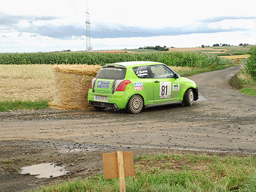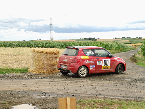Marcel Schuhej / Manfred Radziej auf Suzuki Swift Sport – zack am Strohballen vorbei