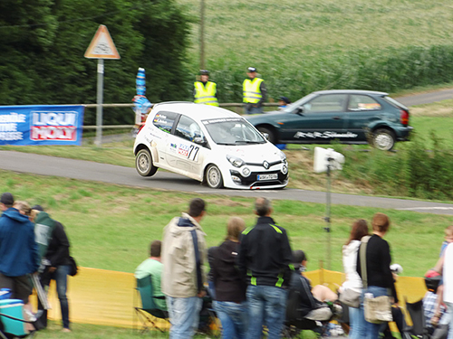 Scheinbar hatten Philipp Hetz / Silvia Dartsch nicht mitbekommen, dass Marcel aufgeben musste, denn Philipp „feuerte” seinen Twingo volle Lotte über die Prüfungen 3 und 4 (mit jeweils einer Bestzeit inklusive RC5-Führung) und dann hart ins Aus. Irgendwie erinnert uns der erst 2015 ins „Rallye-Geschäft” eingestiegene Hetz an Robert Kubica. Immer gut gelaunt – irre schnell – aber leider auch irre schnell draußen ...