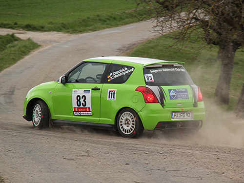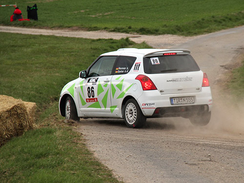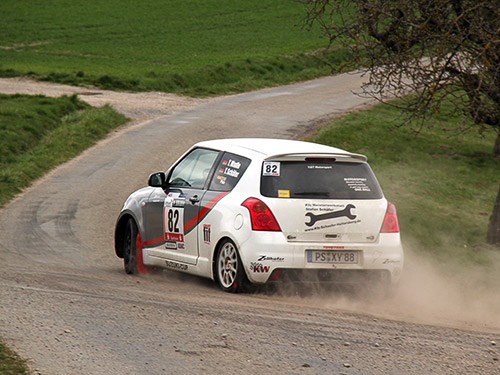 Noch im Halbschlaf machten sich die Hagener Florian Diedrich / Kirsten Hasenpusch an die WP 1. 10 Sekunden „verpennt”, dann auf WP 2 ein leichtes Erwachen – nur noch 4 Sekunden langsamer, um dann in WP 3 hellwach eine Bestzeit auf die staubige Fahrbahn zu legen. Auch in WP 4 waren Diedrich / Hasenpusch mit ihrem Suzuki Swift innerhalb einer Sekunde mit den ersten drei Autos. Was war los in WP 5? Hier wurde der sichere 2. Platz verschenkt und erneut gab es wie in Edenkoben Platz 3 in der Trophy.