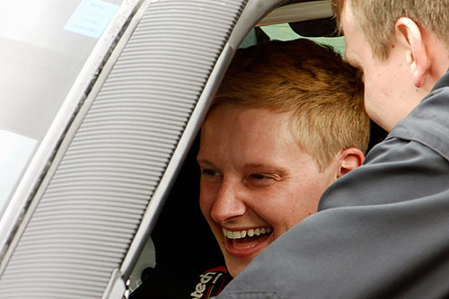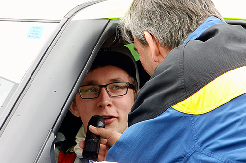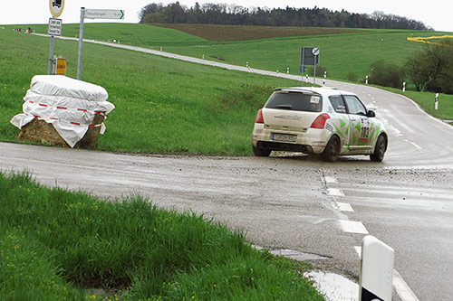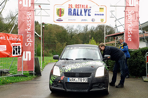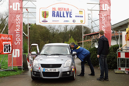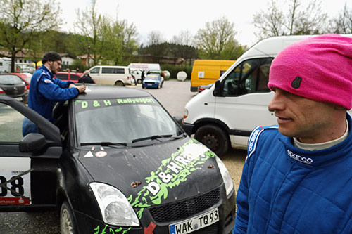 Besonders den absoluten Rallye-Neueinsteiger und Suzuki Swift-Fahrer Andreas Krone mit Co. Heiko Wagner hat es bei dieser Rallye besonders gebeutelt. Vor dem Start war er noch stolz und glücklich, dass er das Abfahren " just in time " geschafft hatte. Auch die Kontrollfahrt ging gerade so zeitlich auf. Er schwärmte von der Qualität der Strecke „Die Rallye-Erzgebirge war ja schon super schön – aber das hier toppt alles. Tolle Strecke. Gute Stimmung.” Seine Stimmung wurde auch nicht groß gedämpft, als sie feststellen mussten, dass die Helmsprechanlage nur einen einzigen Ton übermittelte. Einen hochfreqenten Dauerton mit ca. 150 dB. Die Stecker der Gegensprechanlage passten nicht zueinander. Zerschneiden und neu zusammenfrickeln wollte Andreas die von Daniel (Lesser) geliehene Anlage auch nicht. Also musste Zeichensprache und ein richtig lauter Kommando-Ton die Fahrt in korrekte Bahnen lenken.