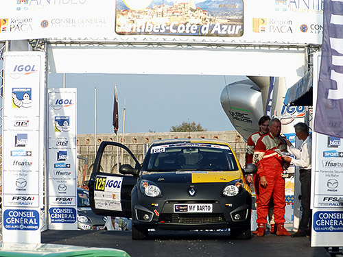 Der Pfälzer-Suzuki mit der Startnummer 133 erreichte als Klassensieger und Platz 79 das Ziel am Sonntag in Antibes. Hajo und Benjamin Rochlitz (Göttingen) mit dem gelb-schwarzen Twingo RS, konnten sich ebenfalls über den ersten Klassenplatz freuen. Sie starteten aus taktischen Gründen in der Gruppe A, obwohl der Renault eigentlich ein waschechtes, fast serienmäßiges R1-Auto ist. Vom Veranstalter gab es noch 250,- Euro Preisgeld obendrauf.
