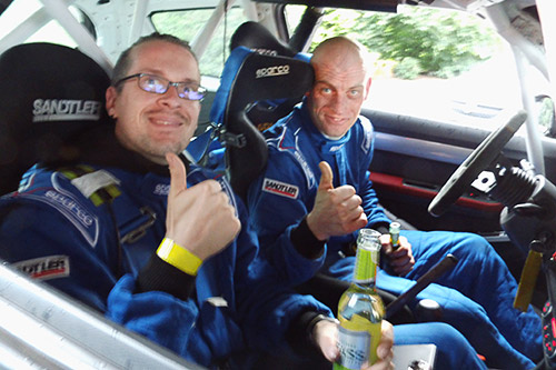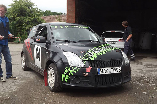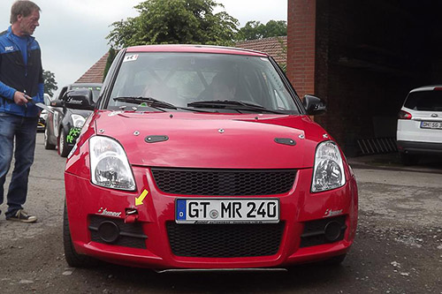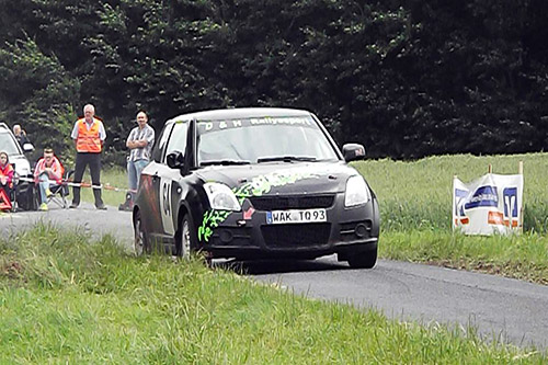 Nach der Besichtigungsrunde drangen seltsame Geräusche aus dem Antriebsstrang des Suzuki N-1600. Der Suzuki musste 500 km fern der Heimat wieder auf den Anhänger geladen werden. Besonders schade war dieser Schaden für seinen Co Marko Stoller, der Tobias Schäfer auf dem Beifahrersitz ersetzte und der keinen Meter unter Wettbewerbsbedingungen sah.