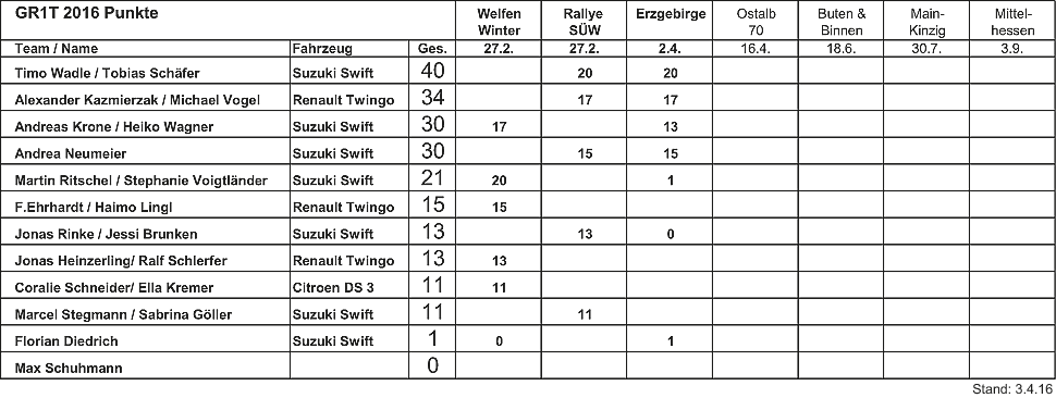 Viel Spaß hatte „Späteinsteiger” Andreas Krone mit seinem Co. Manuel Fox und dem von Daniel Lesser geliehenen Suzuki Swift. Nach der guten Platzierung bei der „Welfen-Winter” nun weitere Punkte für Platz 4 in der GR1T. Auch hier eine ständige Steigerung mit jeder gefahrenen WP.