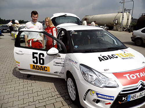 Nochmals 7 Monate jünger ist „Neuzugang” Nico Knacker, der einen (Citroën) DS3 R1 des ADAC-Weser-Ems an den Start brachte mit „Küken” Nicole Holzer (17 Jahre) auf dem Beifahrersitz. Wenn man unter Citroën-Trophy.de nachsieht, dann hat das ADAC-Weser-Ems-Team trotz des extrem geringen Alters schon bei der Rallye Sulingen und in Sachsen reichlich Punkte in der Citroën-Trophy gesammelt.