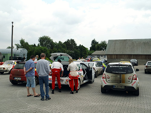 Wie gut der Team-Geist unter unseren Rallyekonkurrenten ist, sieht man daran, dass Erik Sindermann alle Teile, die Philipp's Bruder Daniel zur Reparatur vor Ort benötigte, ruck-zuck aus seinem Servicewagen herbeischaffte. So konnten Philipp und Silvia die 2. Rallye (zählt nicht zur GR1-Trophy) doch noch in Angriff nehmen.